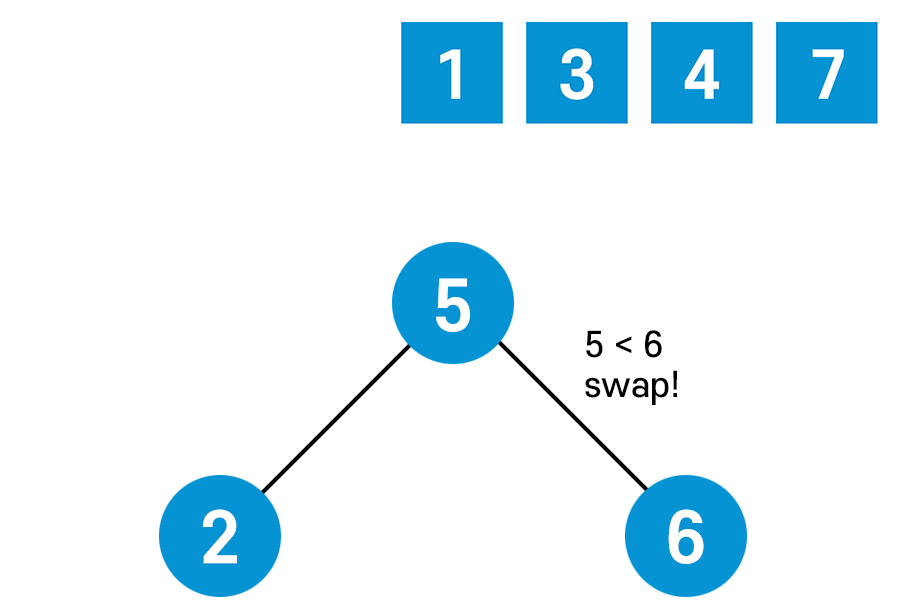 자식 노드들 끼리는 값을 비교하지 않는다. 즉, 위 예시에서 2와 5는 비교하지 않는다는 것이다.