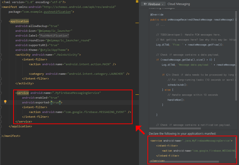 <action android:name="com.google.firebase.MESSAGING_EVENT" />