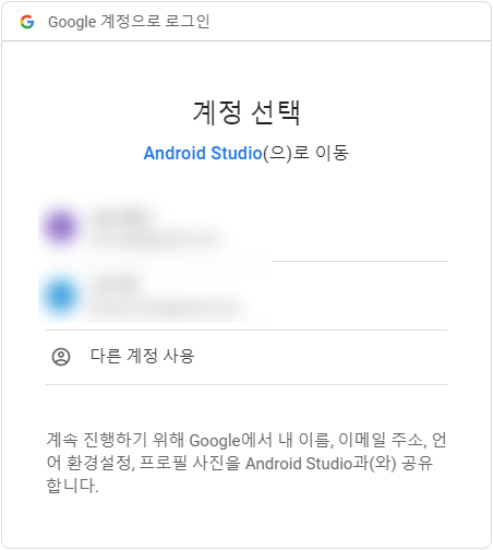 계정 선택하고 다시 안드로이드 스튜디오로 돌아오면 된다.