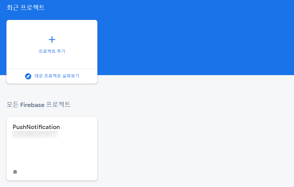 이제 FCM 연동이 잘 되었는지 확인하기 위해 파이어 베이스 콘솔 홈페이지로 접속한다.