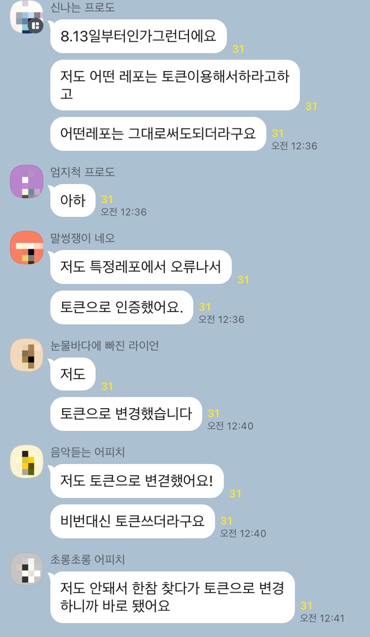 발급된 토큰은 패스워드 대신에 입력해주면 예전처럼 인증이 가능하다.